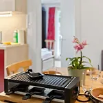 Een complete keuken met een magnetron, koffie- en theevoorzieningen, een koelkast is beschikbaar als onderdeel van de zelfvoorzienende voorzieningen van het appartement. De bushalte Kirchbruecke ligt binnen een straal van 650 meter.